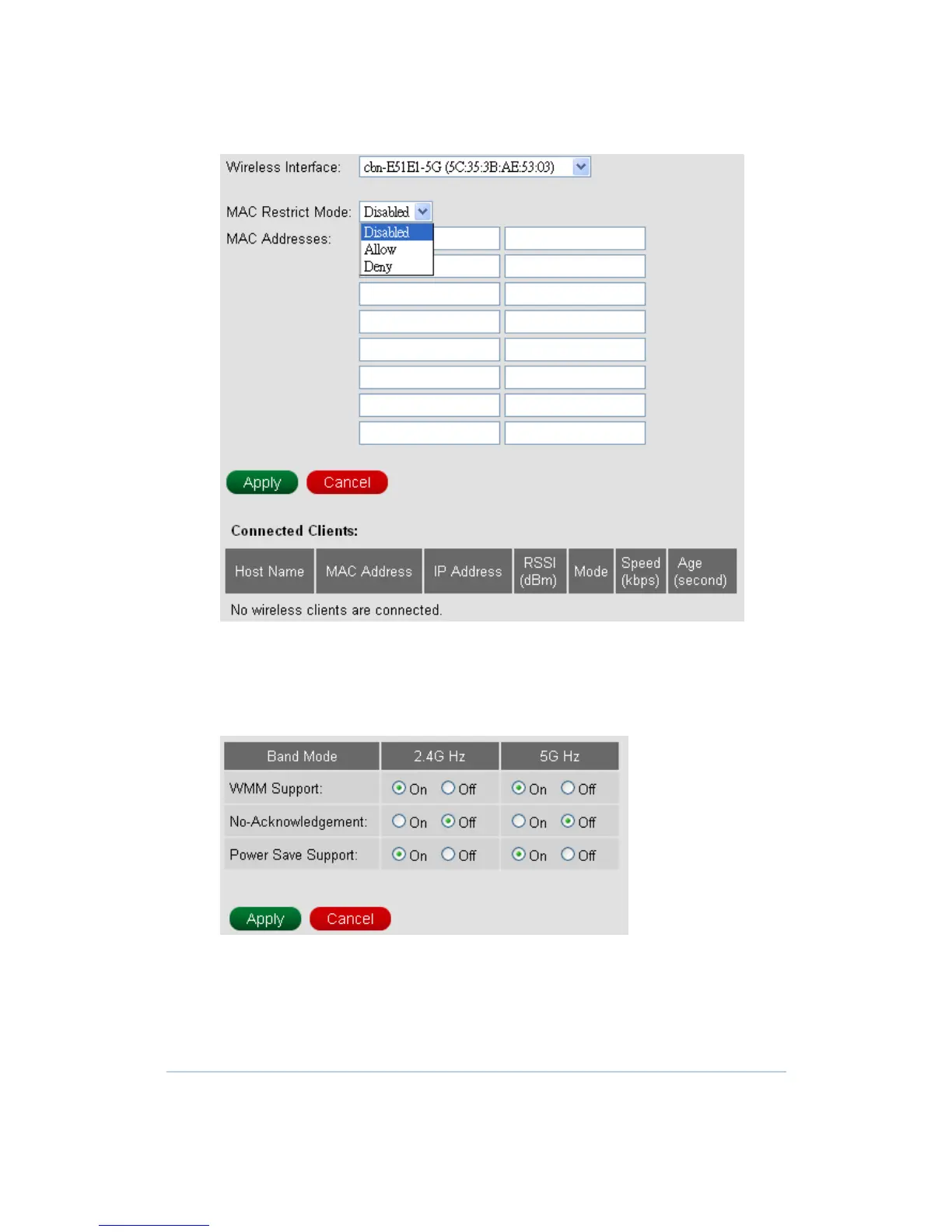 CH7284E provides WMM page to configure Wi-Fi Multimedia QoS. Actually, we suggest