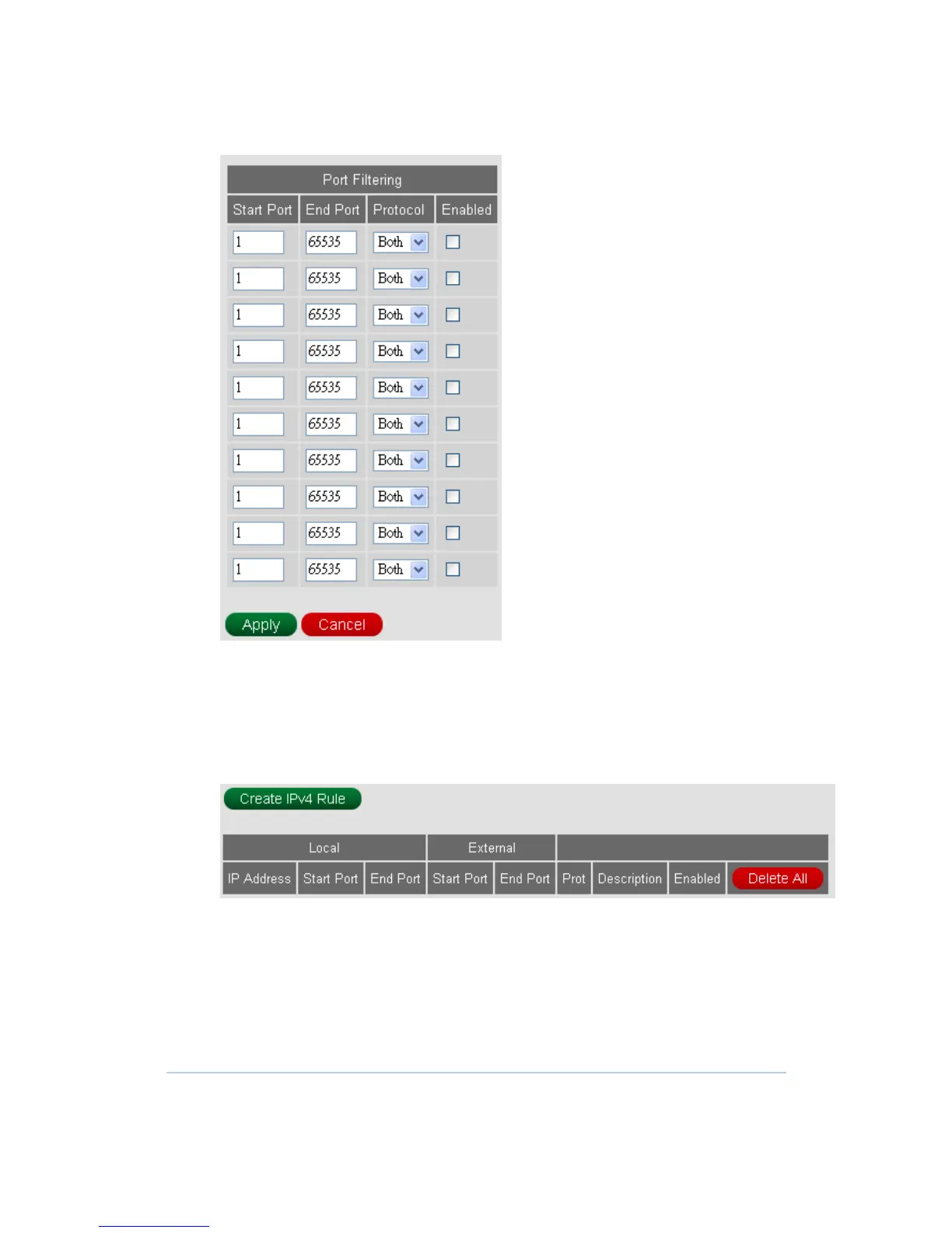 CBN CH7284E - Port Filtering; Port Forwarding