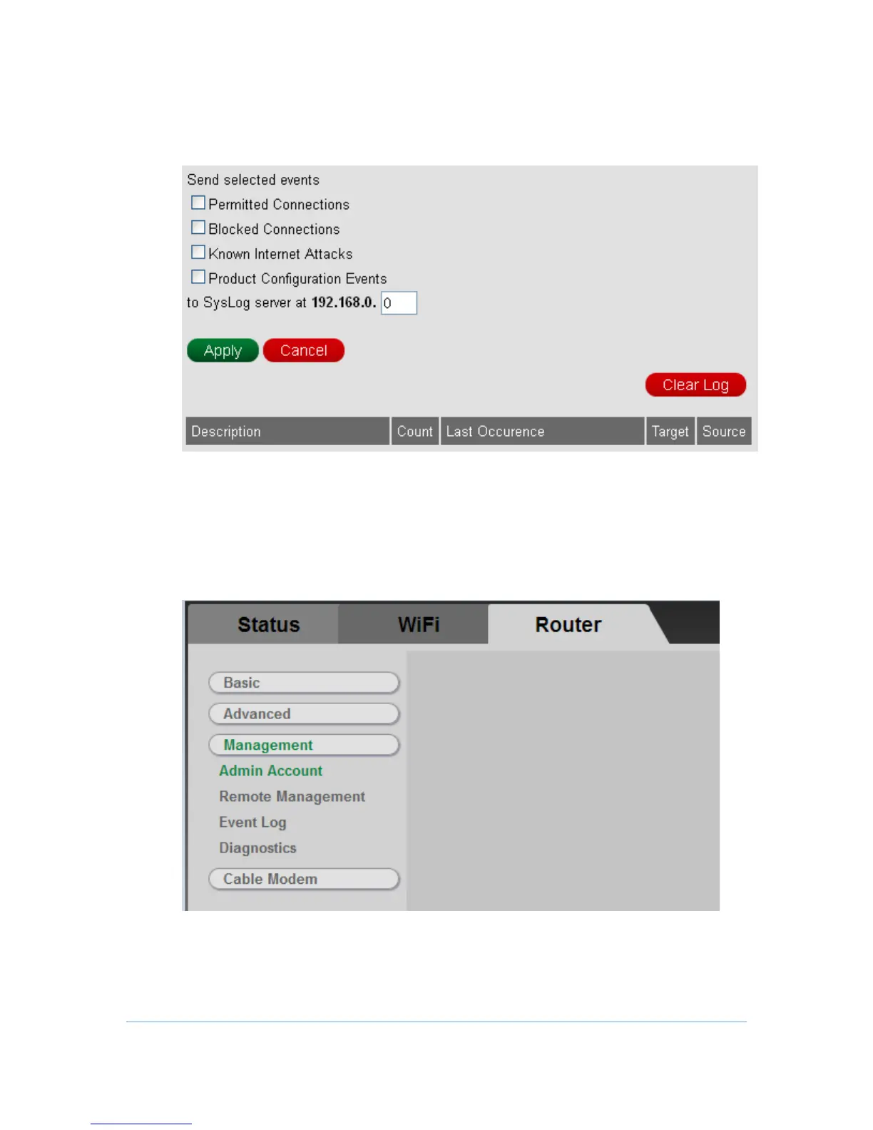 This page allows optional configuration of events to be sent to a local SysLog server.