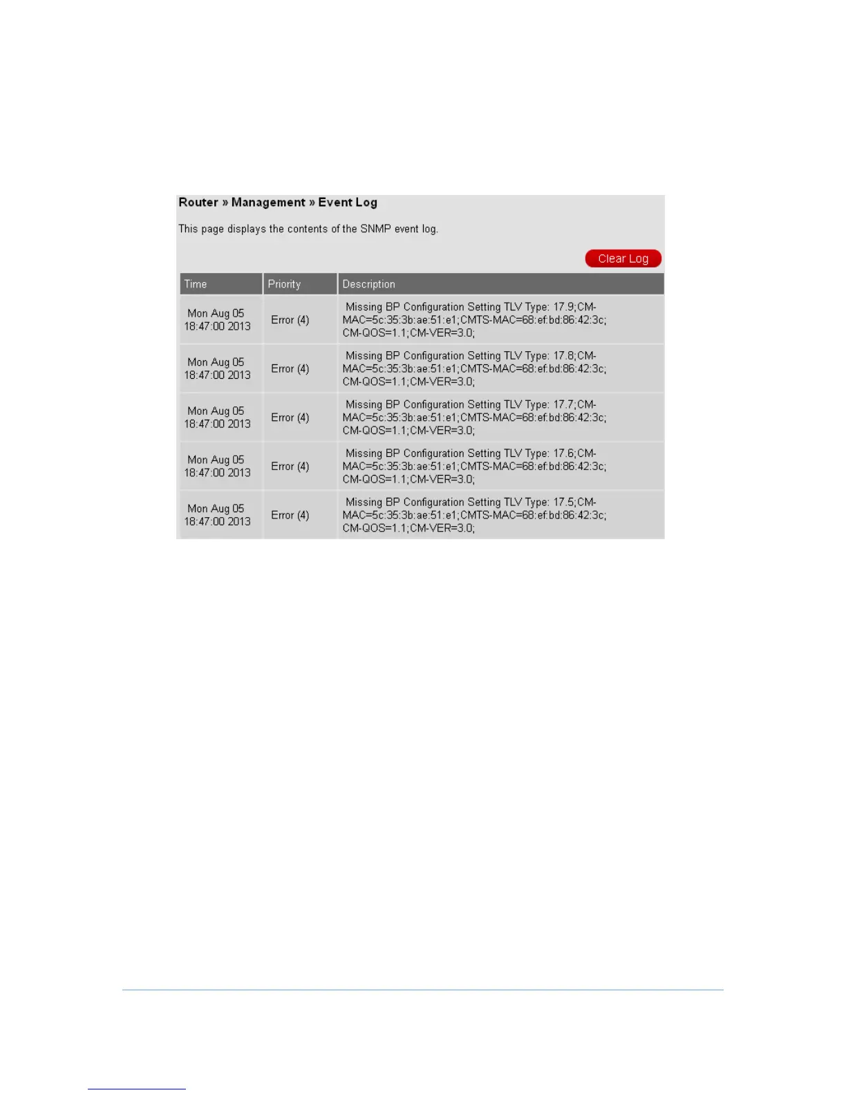 SNMP event log. Also, users can press Clear Log button to clean all records.