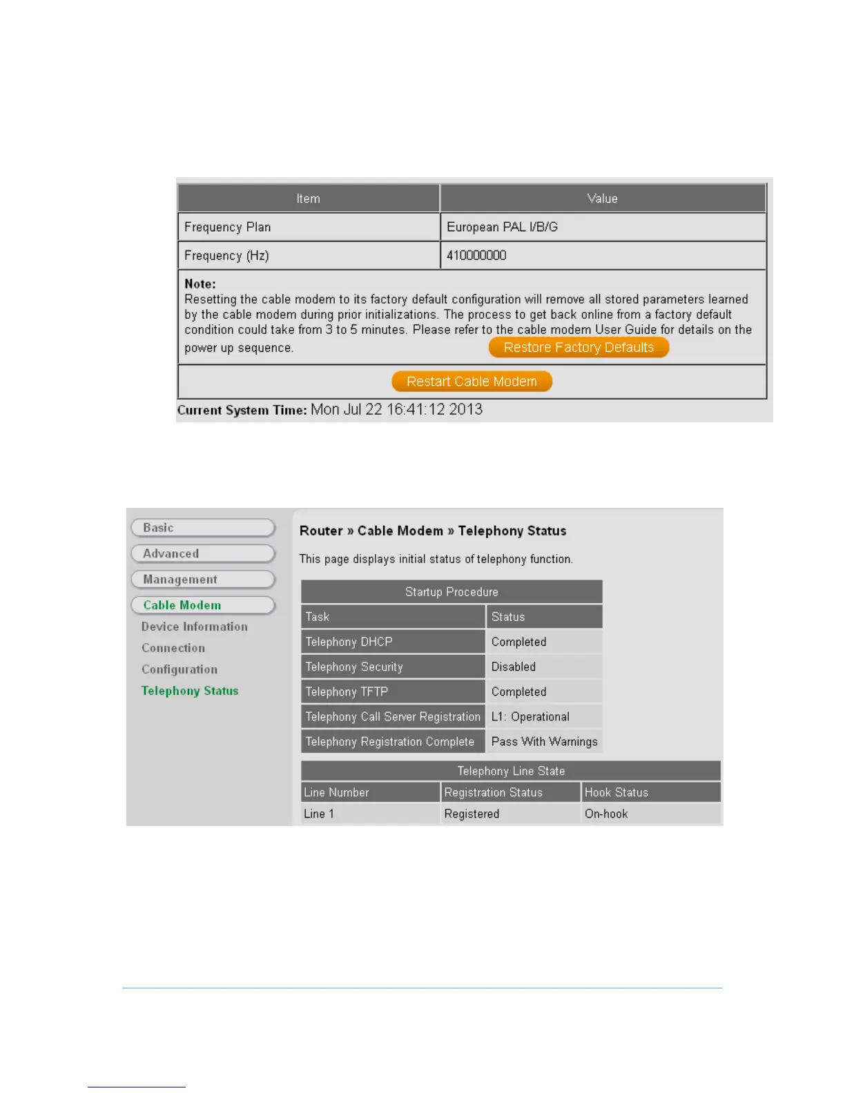 CBN CH7486E - Configuration; Telephony Status