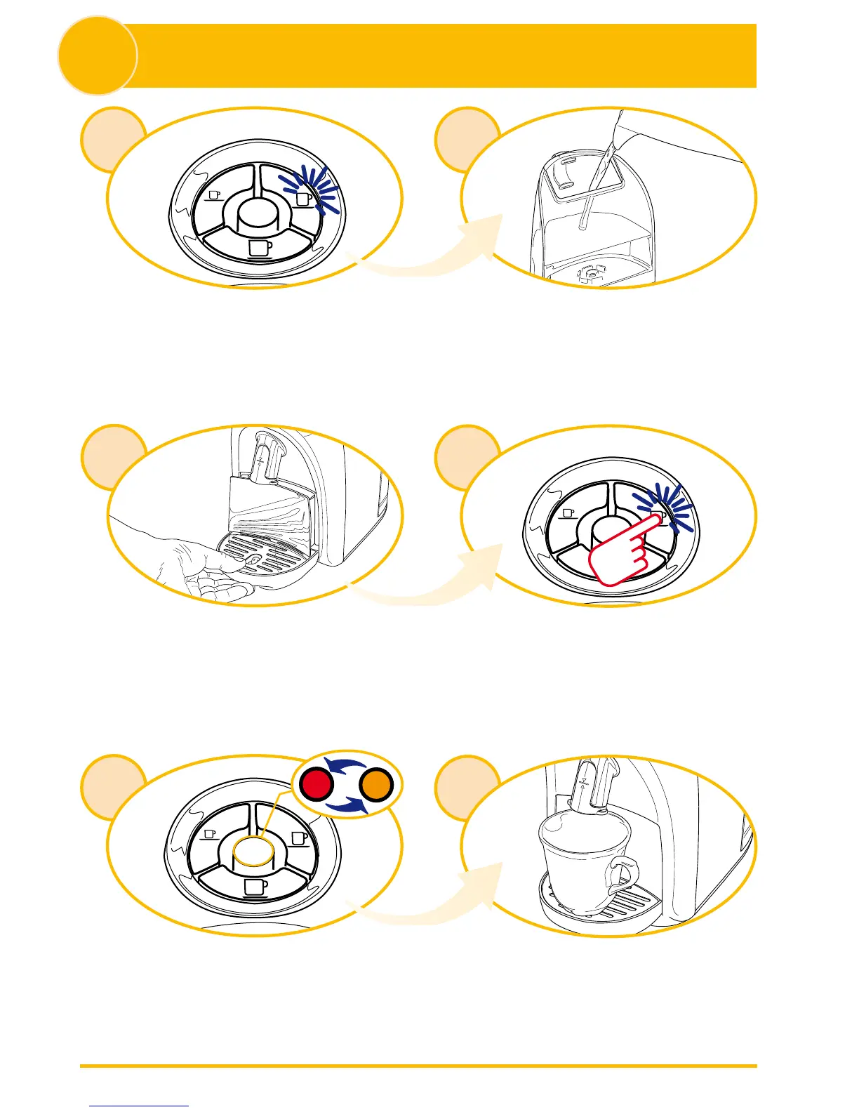blink alternately. Press the long espresso button to start the rinse cycle.