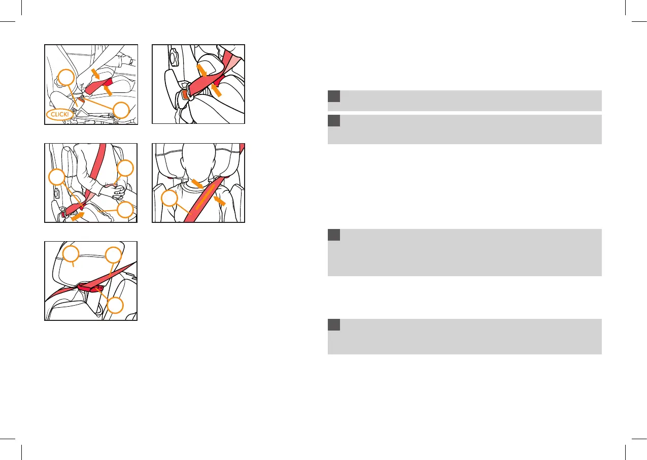 1. Поместите ребенка в кресло. Потяните трехточечный ремень вправо и
