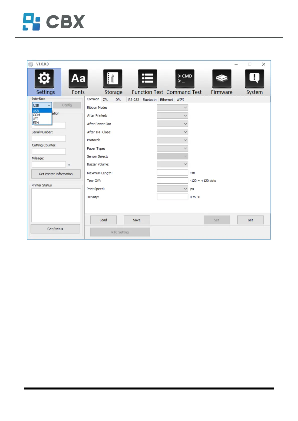 (1) Set up the interface needed. (range: USB, COM, LPT, ETH)