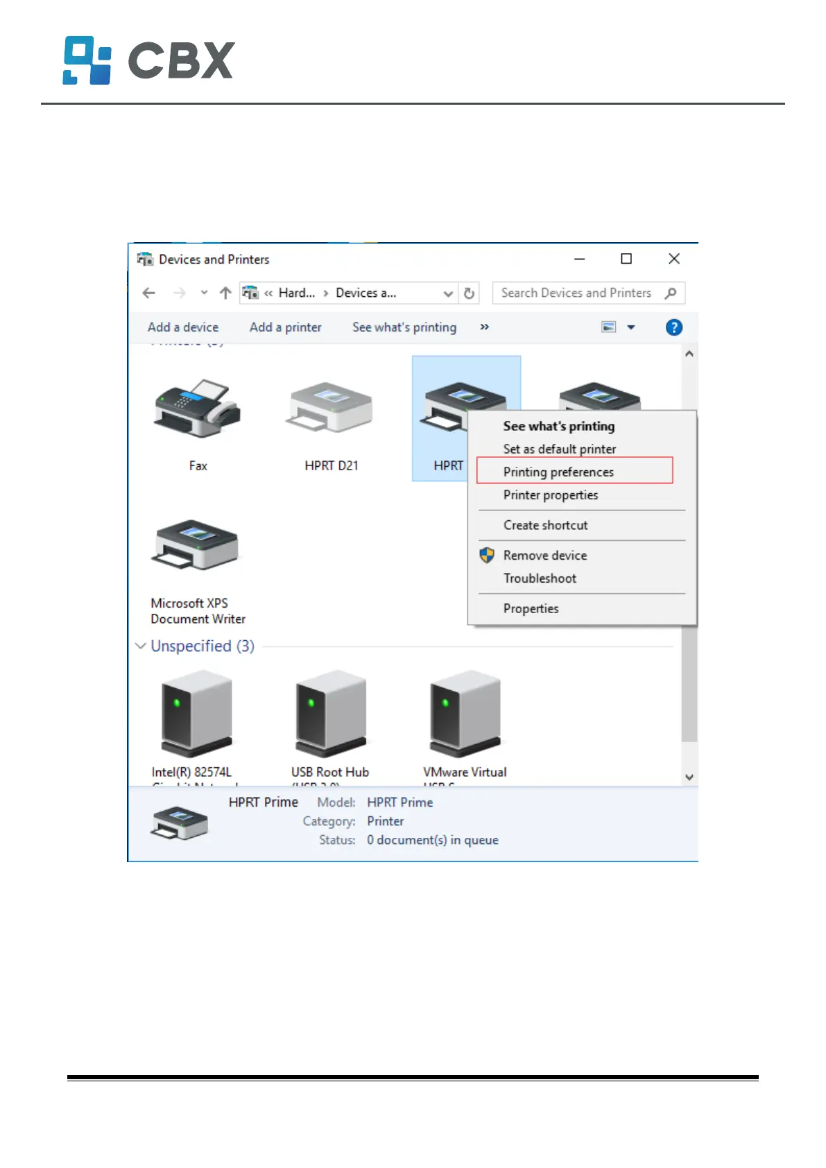 1.Click “StartĺDevices and Printers. Right click the icon and choose Printing preferences.