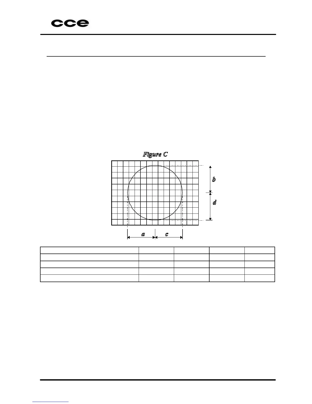 e) Observe the screen pattern and check the distances a, b, c, d (in