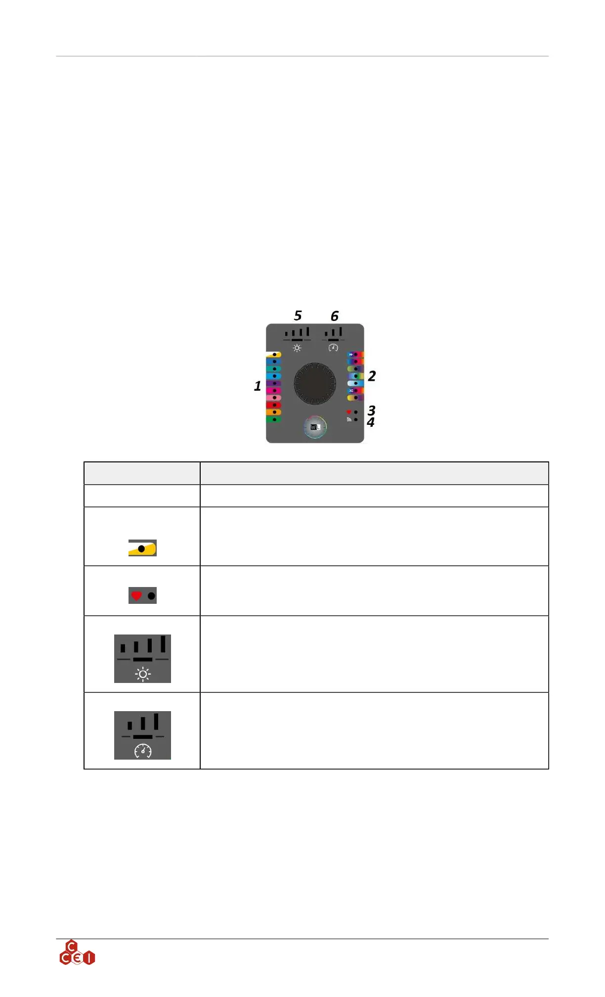 Colours and show lights Turn the selection button and push 1 time on the desired colour / show.