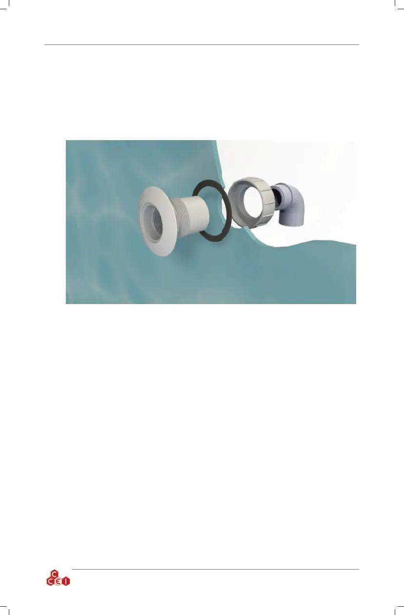 Prior to installing, drill a hole in the pool using a 60-mm (2 3/8-in) diameter cylinder saw. The wall