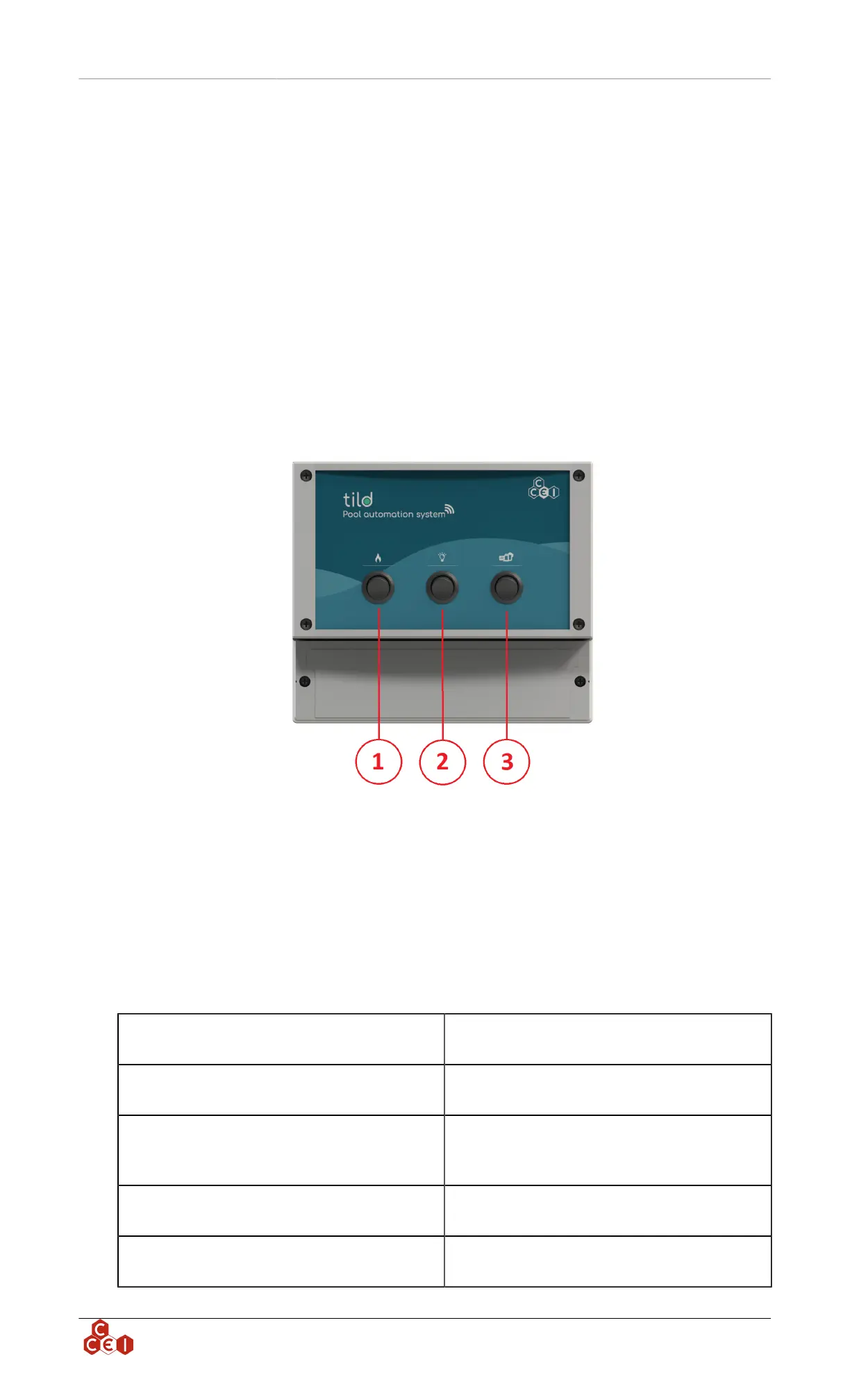 The indicator on the Tild unit lights in different colors depending on the controller status and may also