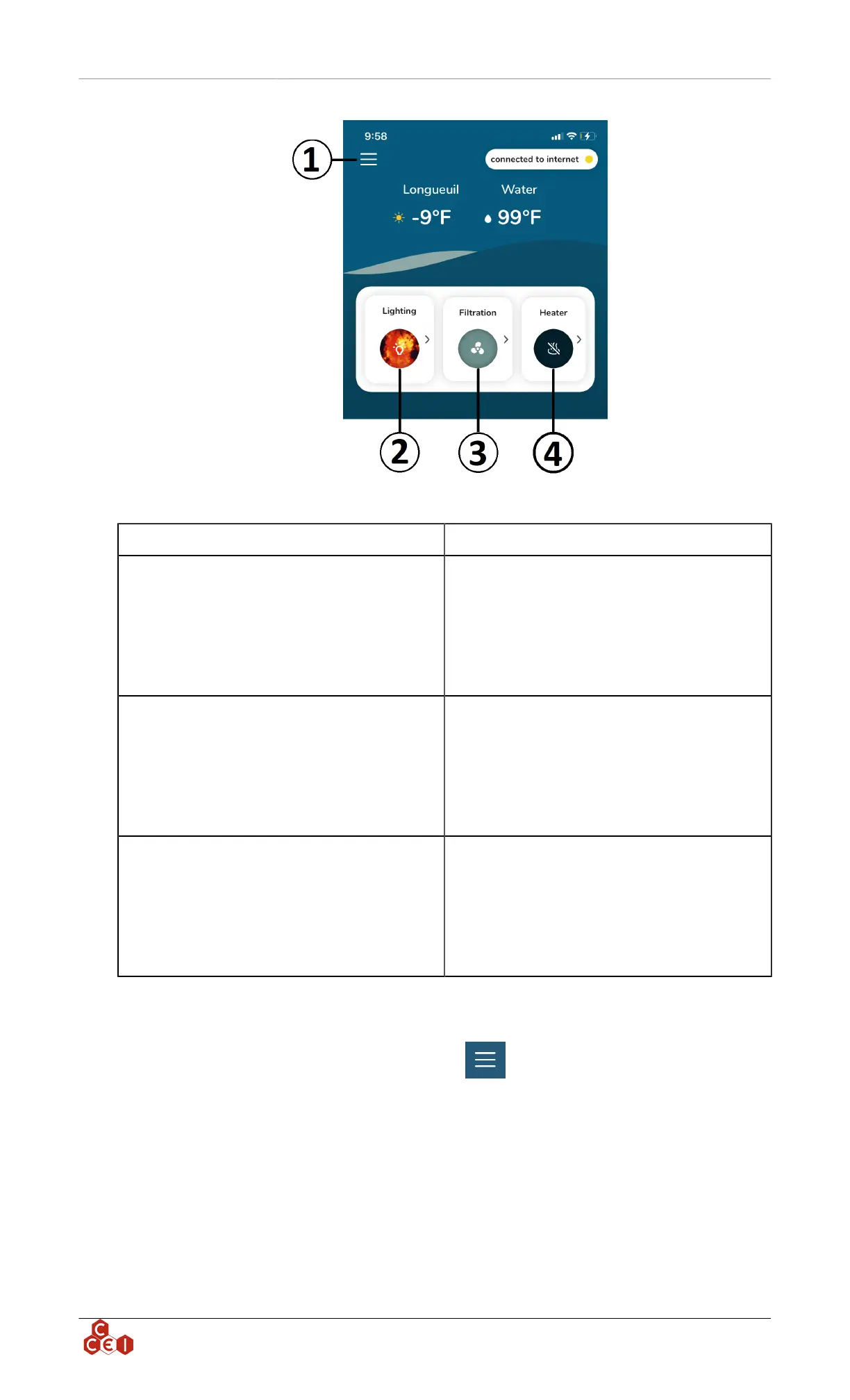 Heater menu, clicking on this button allow you