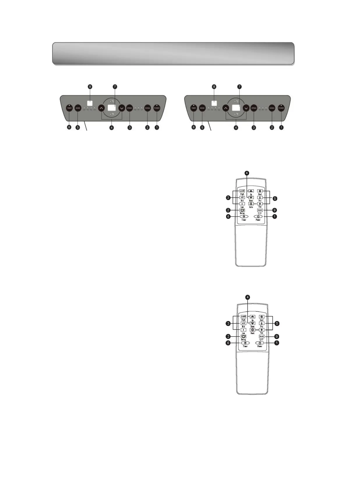 Press the key to choose high/ low gear wind speed.