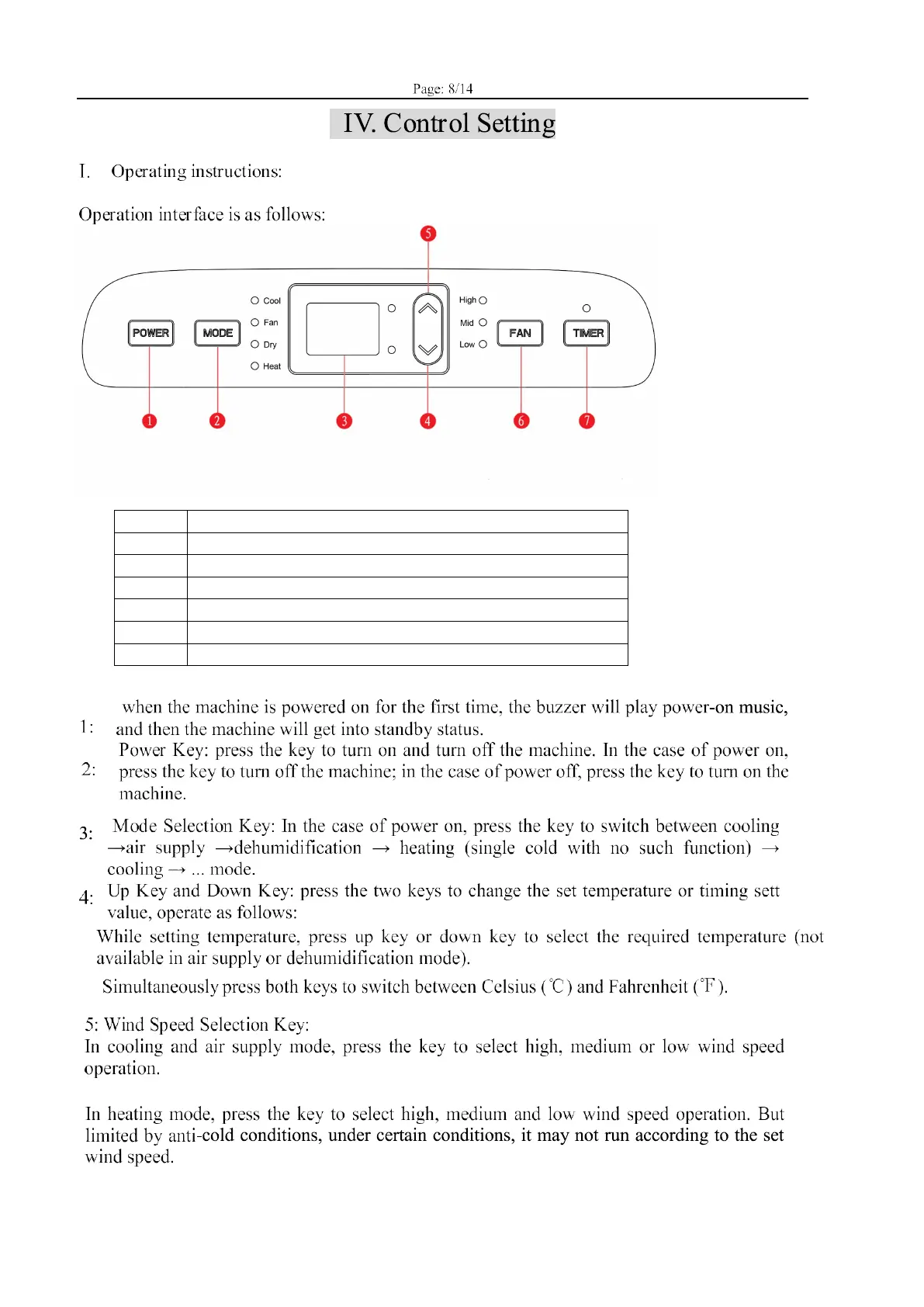 CCH YPS3-14H - Control Setting; Operating Instructions