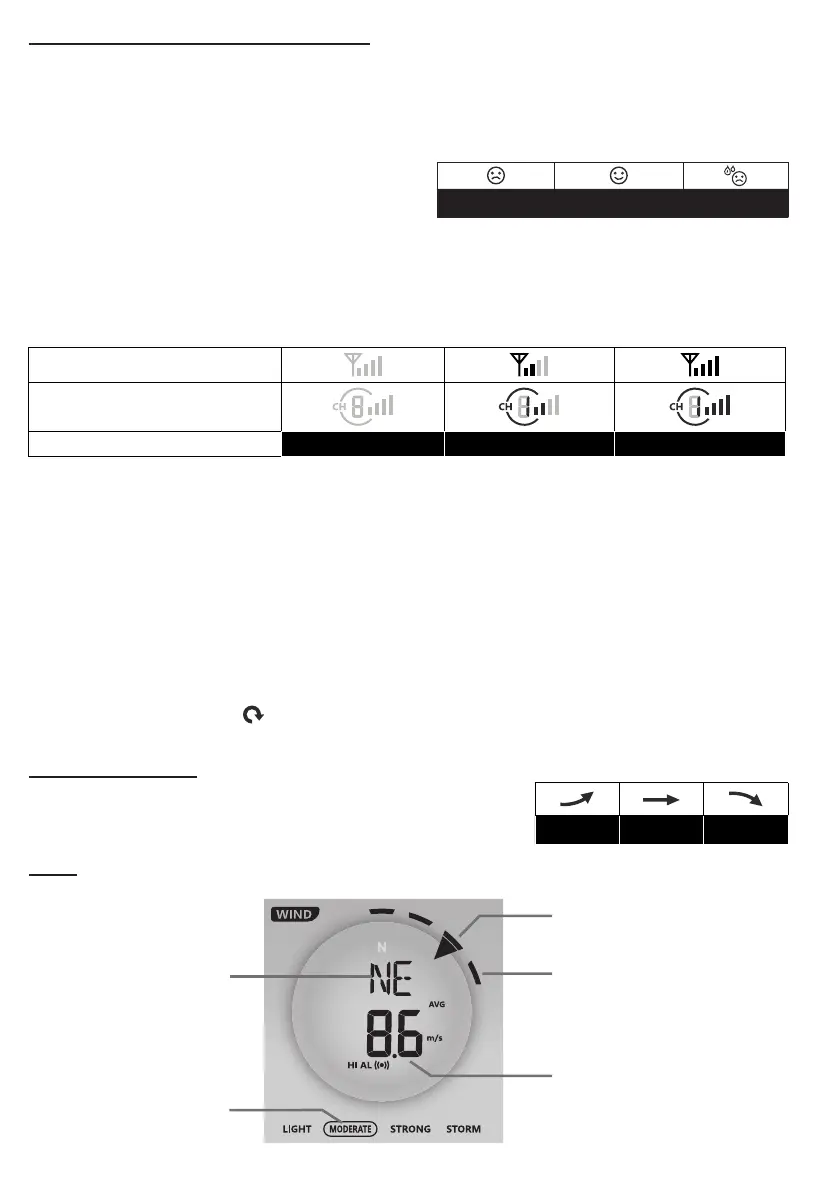 1. The console display signal strength for the wireless sensor(s), as per table below: