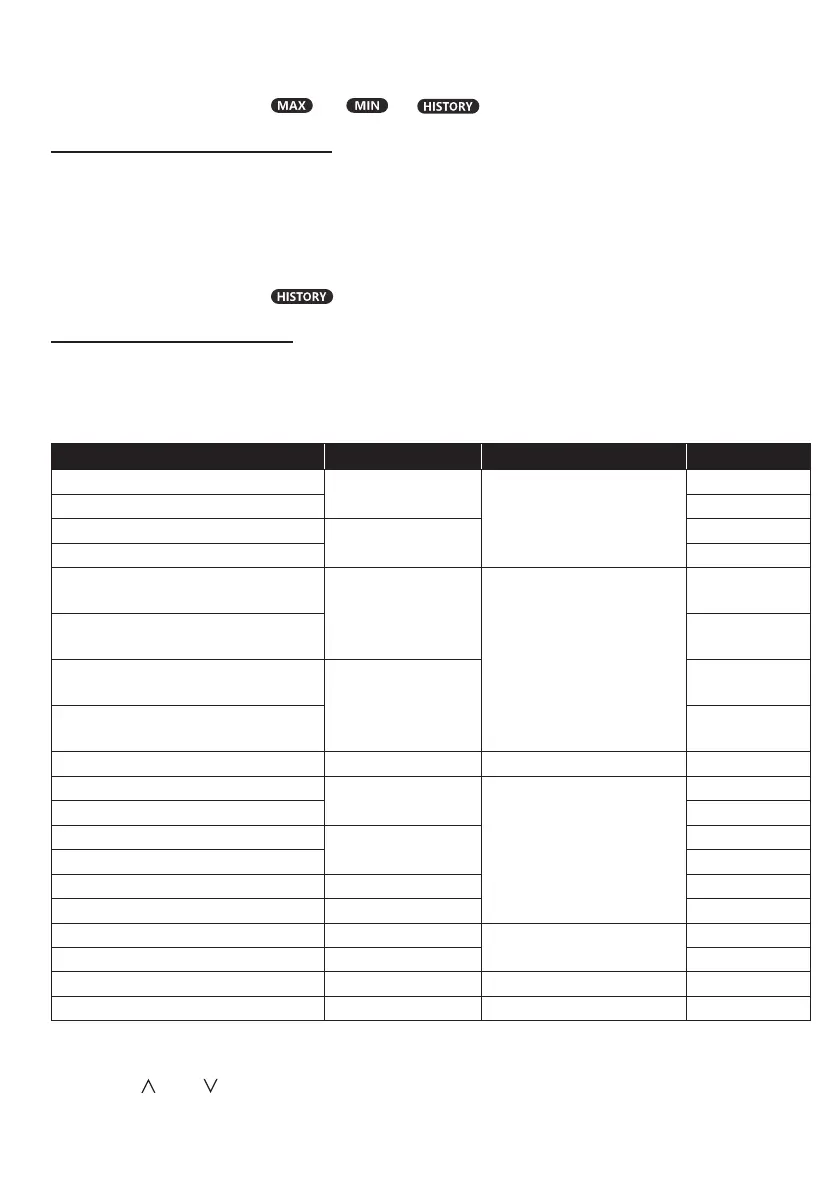 Press and hold [ MAX / MIN ] key for 2 seconds to reset the current on display MAX or MIN records.