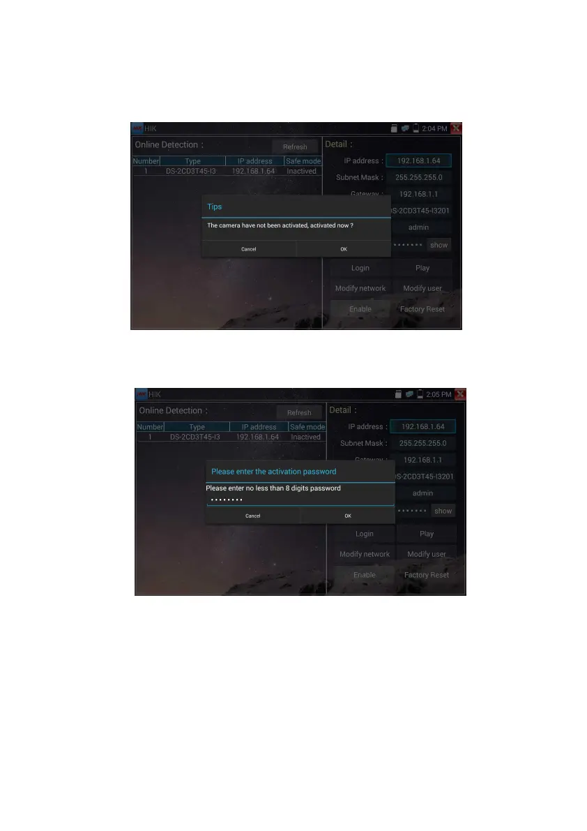 After activating the camera, the program default modifies the camera IP. Activated multiple cameras in