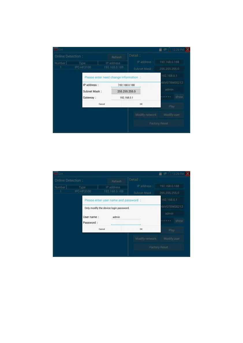 Modify user information: modify camera user name and password, which is onvif, Dahua test tool, IPC