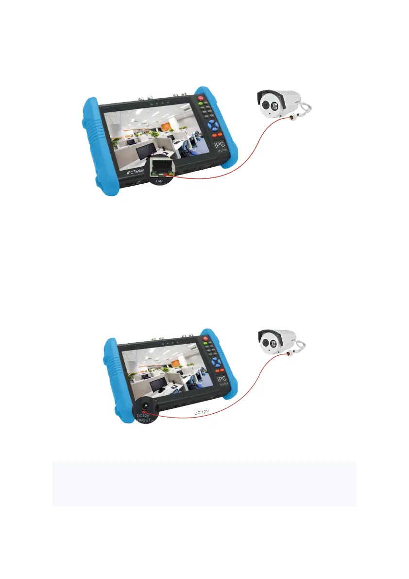 supplied converter cable connects to the tester’s DC12V/2A OUTPUT and the other end connects to the