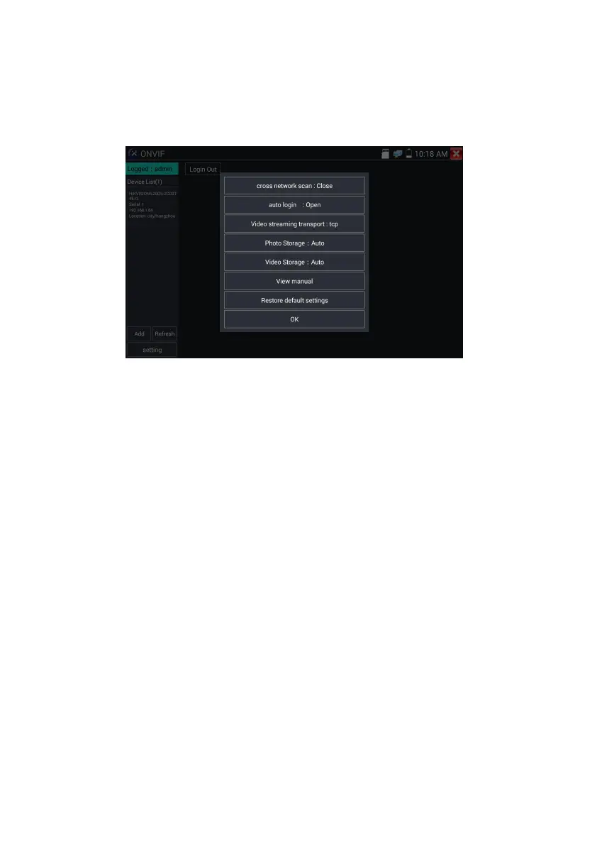 Pop-up settings menu when click the “ONVIF setting ”icon in the upper left corner.