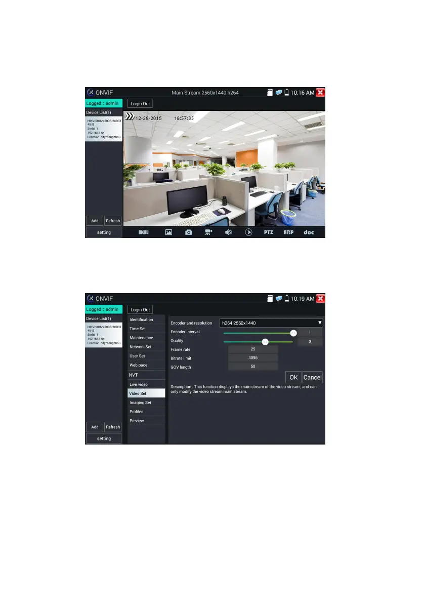 IP camera video settings: Click Video Set” to enter the IP camera’s encoder and resolution settings.