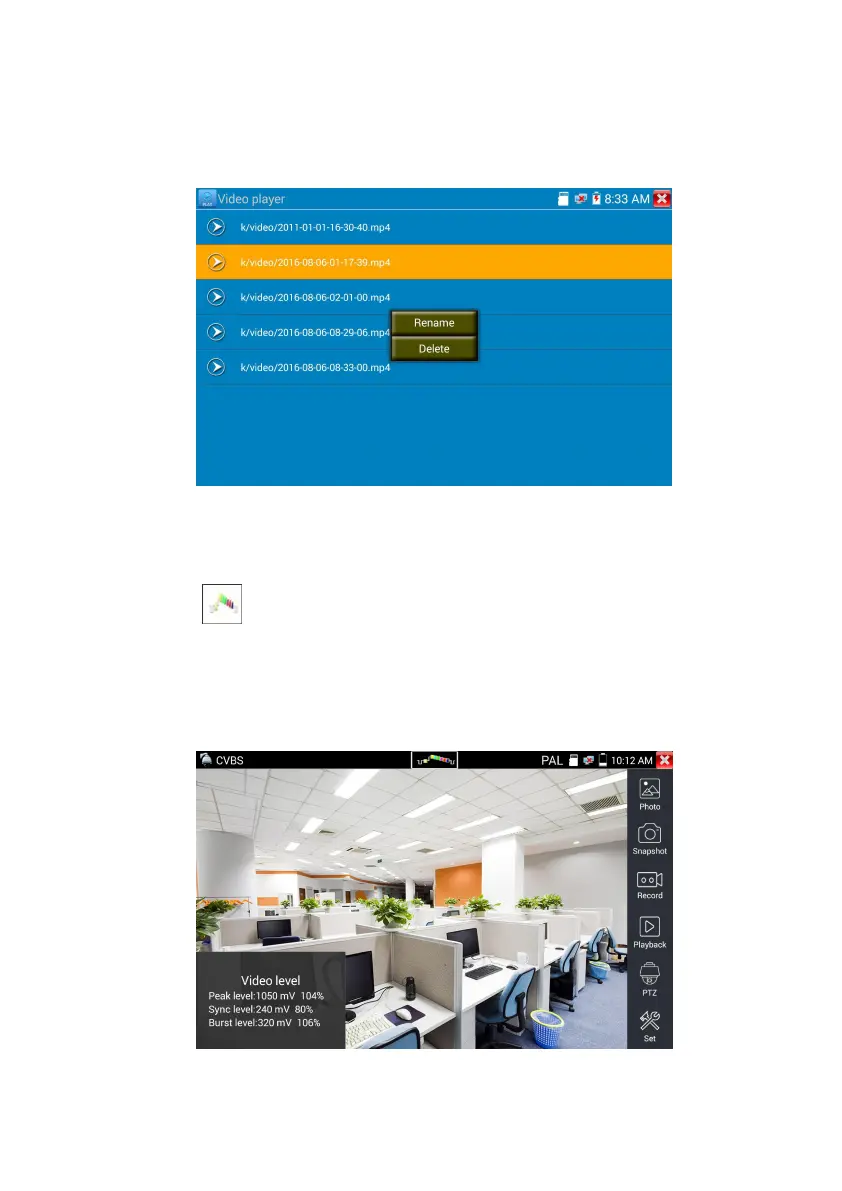 To rename or delete a video, click and hold on the file until this screen appears: