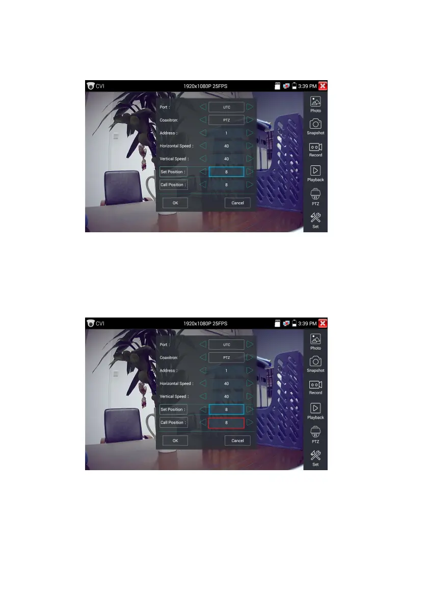 Tap the preset position area, input preset position number. Tap call position” to complete call preset
