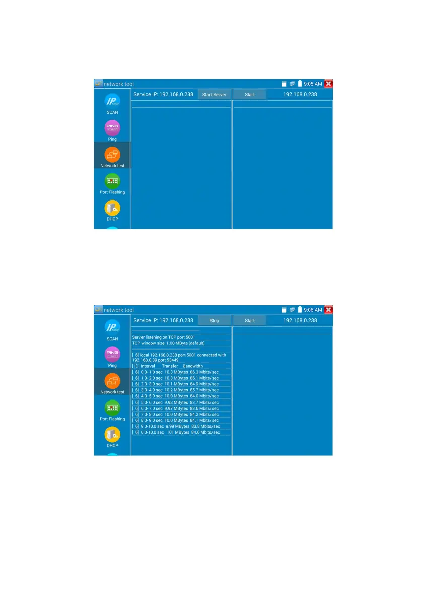 a).Start the server: Click “Start Server” button to use the tester as a Server. It will display its IP