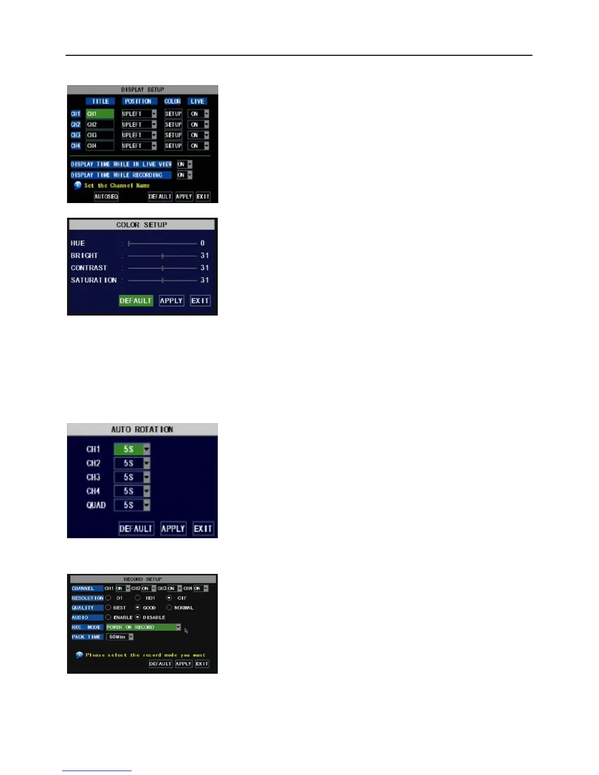 Click [Main Menu] [Record] to enter into [Record Setup]