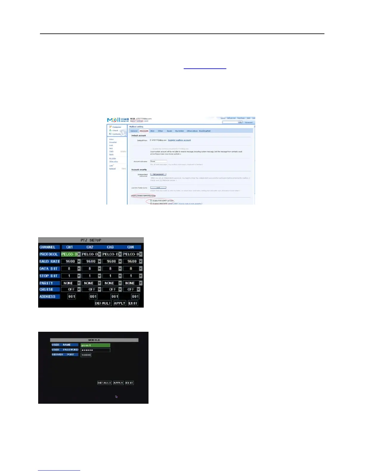 User password: indicate user password of DVR
