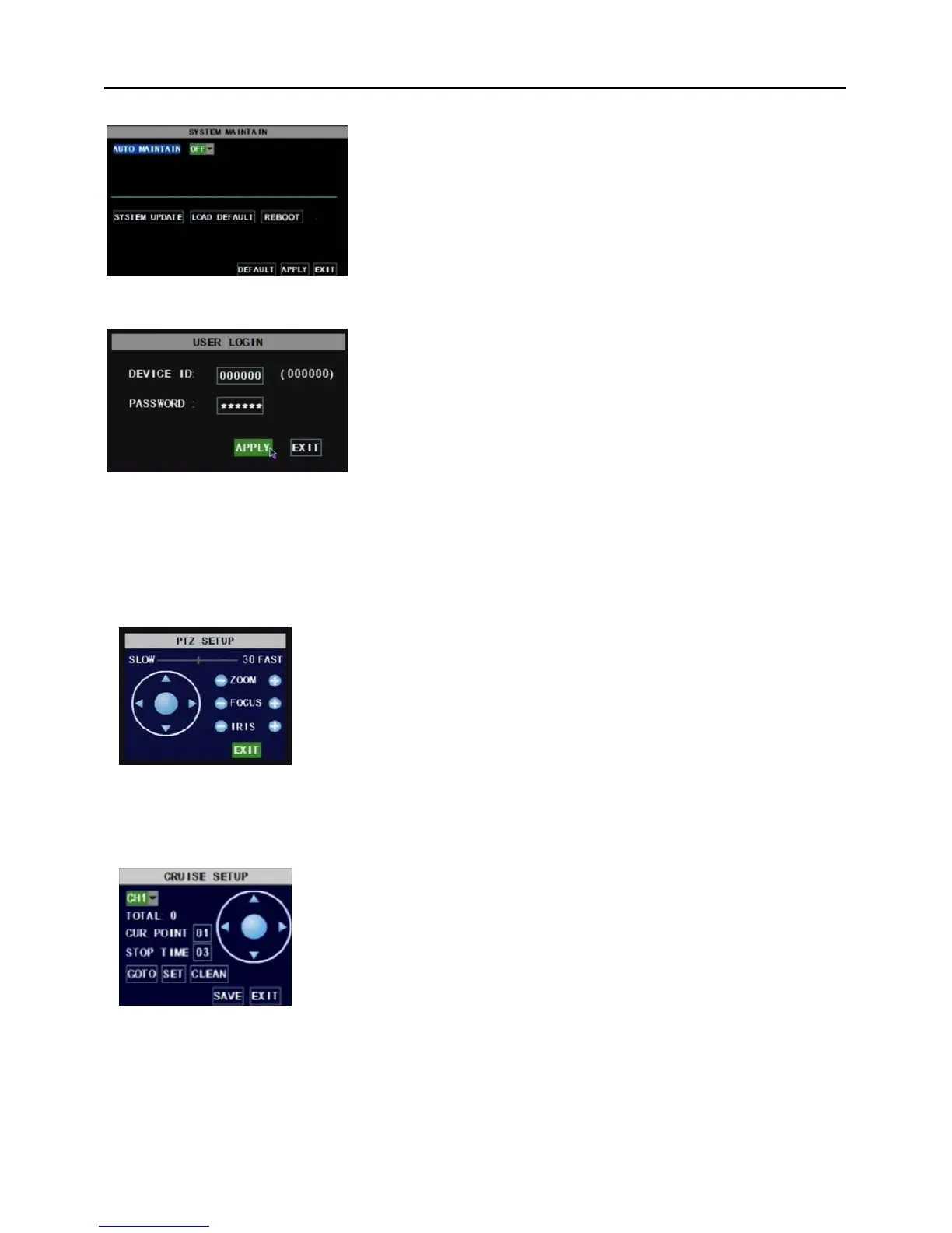 Open auto cruise function on PTZ setting menu if you want to setup cruise function (system default: on),