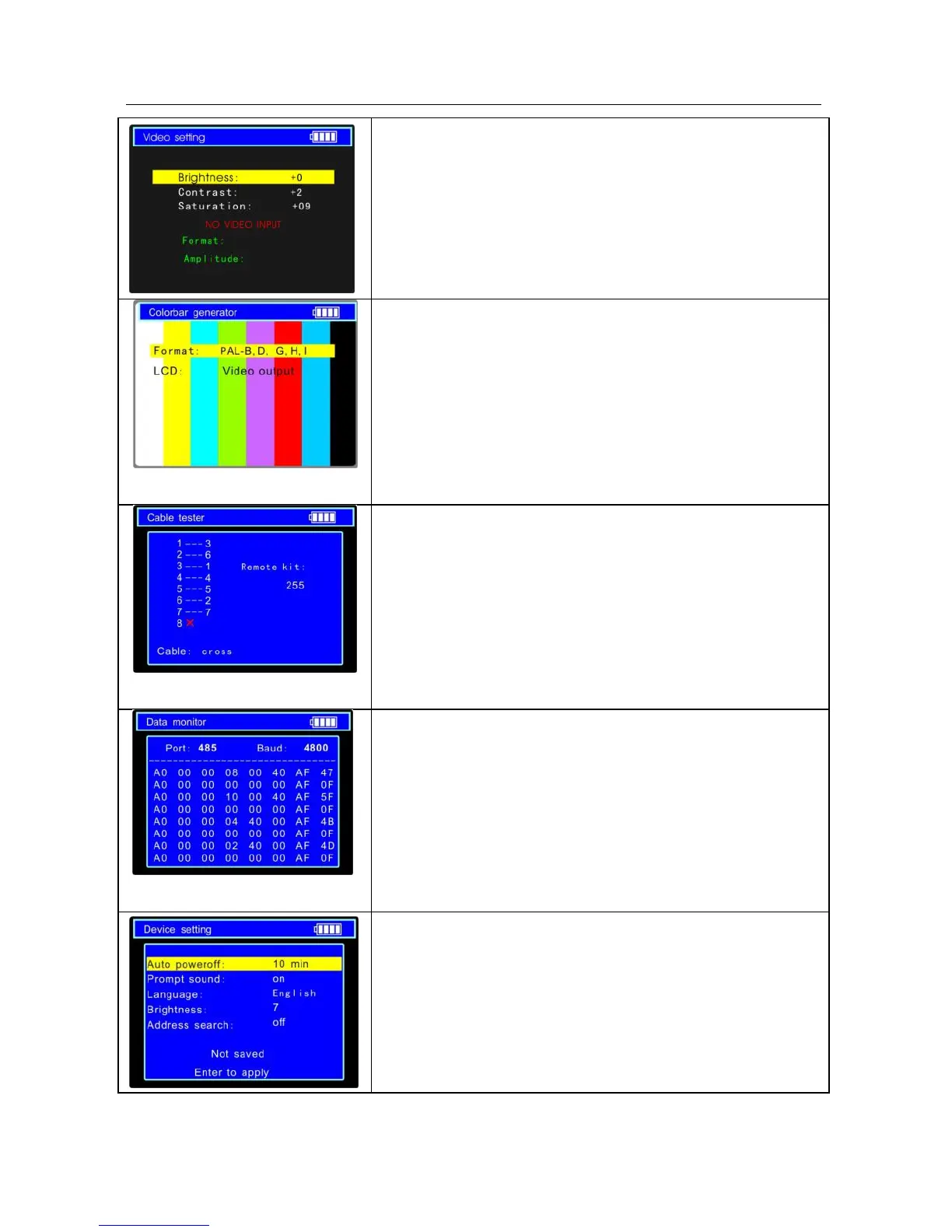 Set the parameters of the CCTV testerPRO (Auto power off/