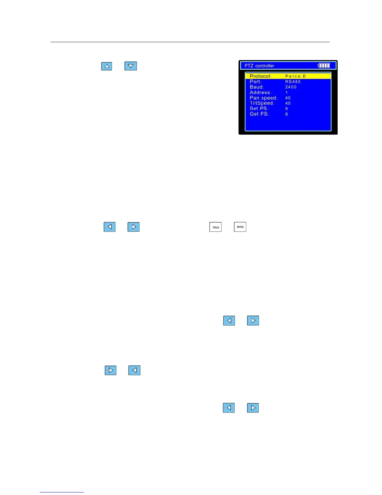 b. Press SET key to enter PTZ controller submenu