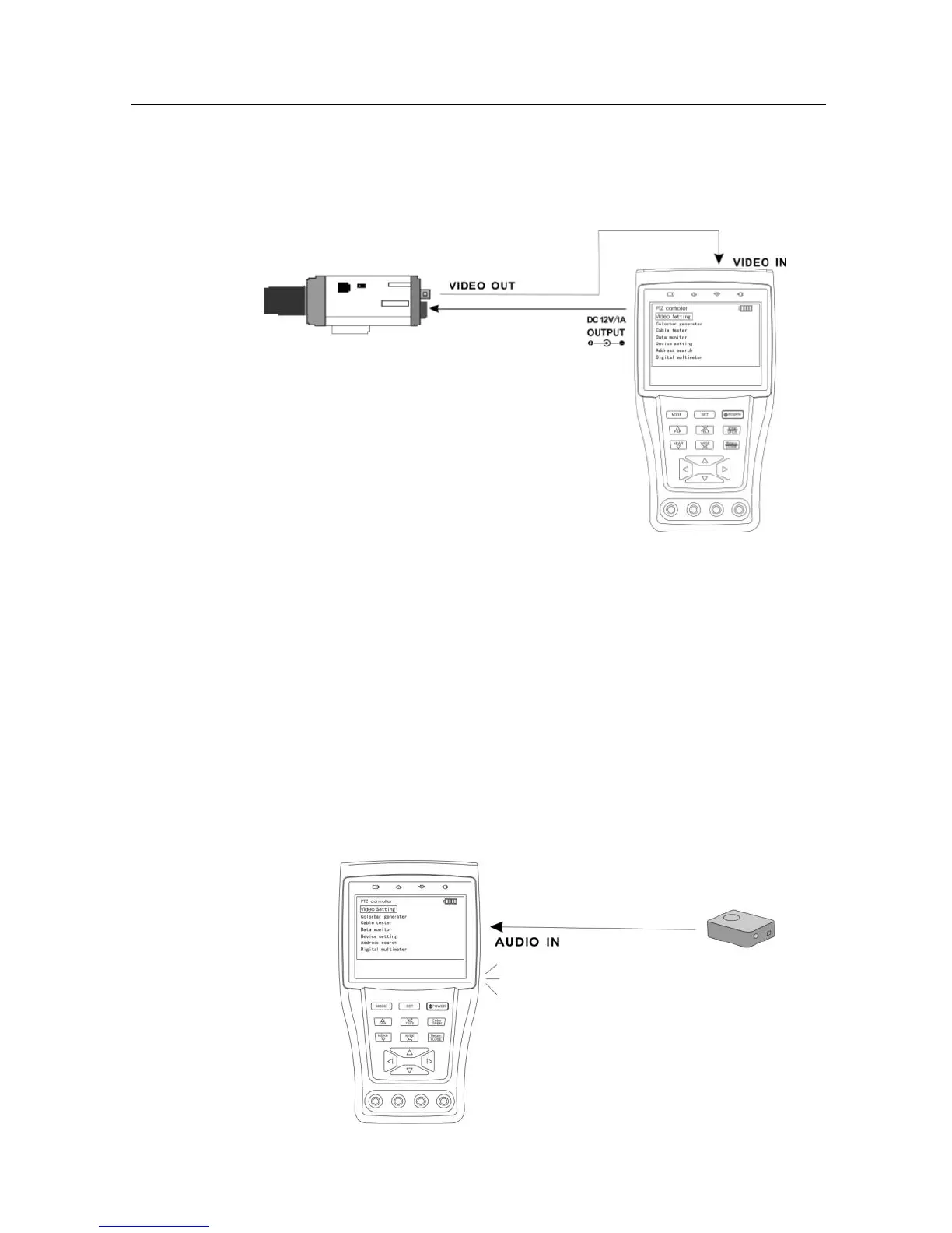b. Don’t output this DC12V/1A power to the power input port of the CCTV tester to avoid destroy.