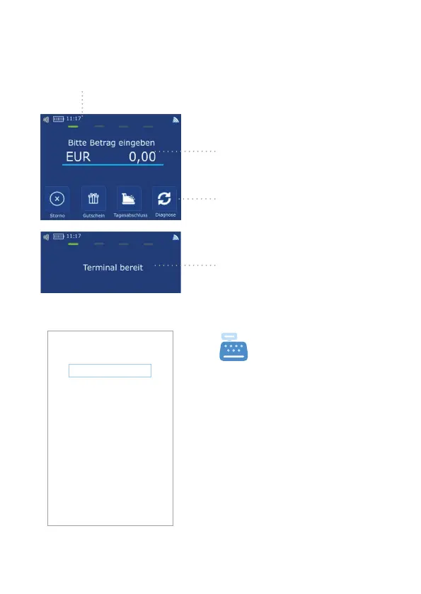 Statusleiste (Kontaktlos-Anzeige, Uhrzeit, Kommunikations-Status)