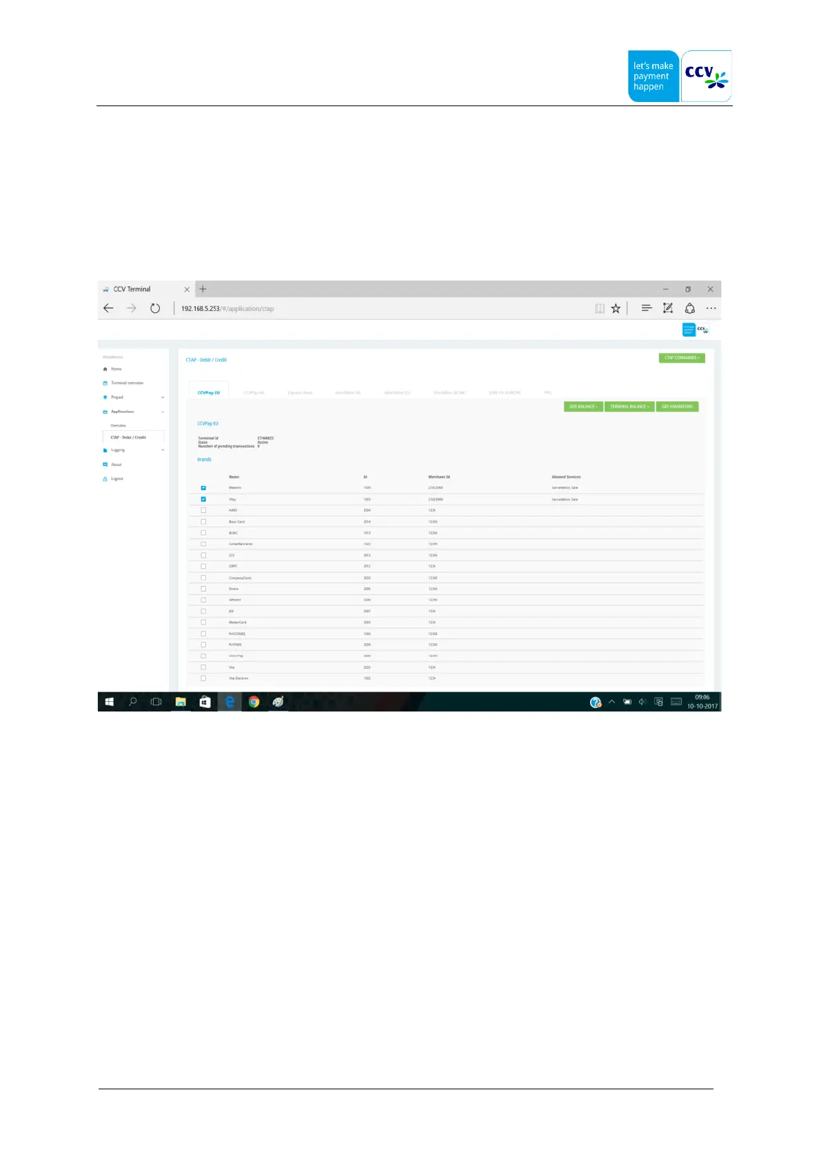 When the installation is completed and all went well, check if the parameters are correct in the Applications > CTAP Debit /
