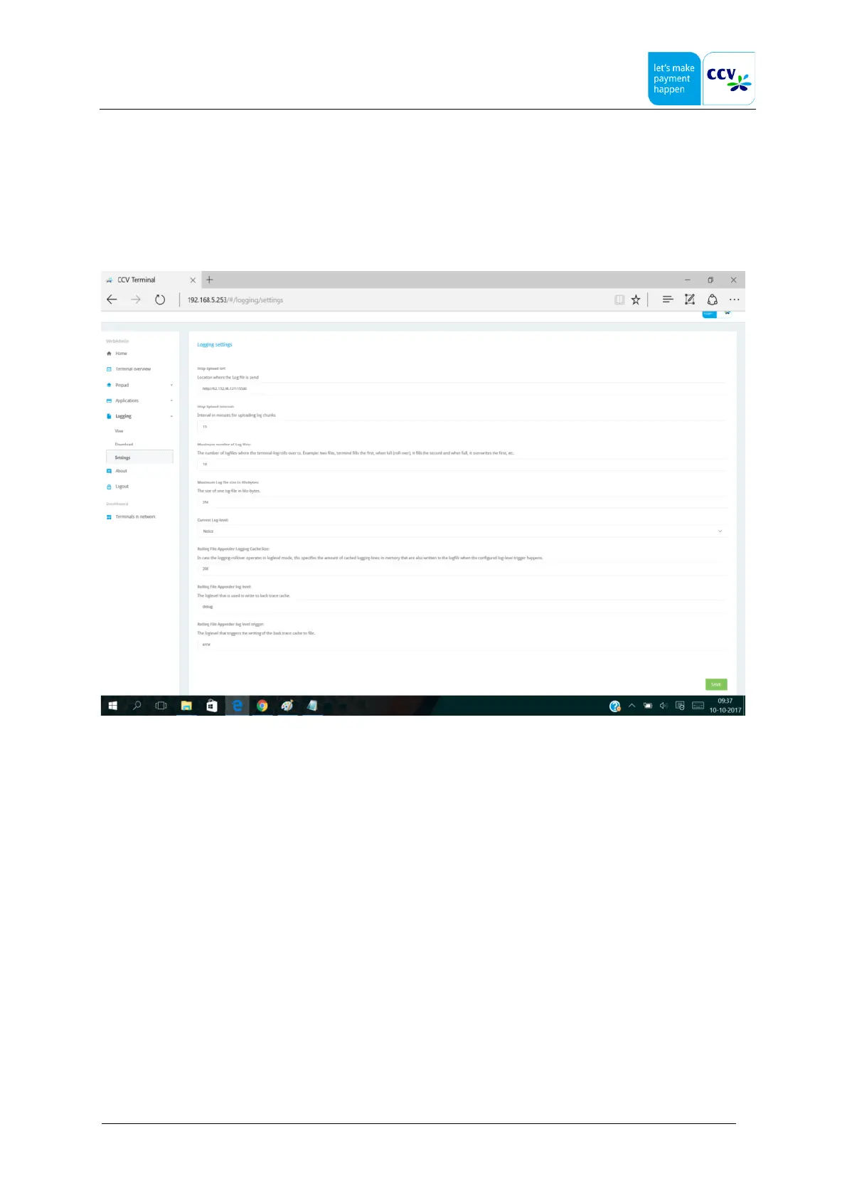 On this page is also the location where the log file is send, every 15 minutes the terminal sends a log file to CCV (if