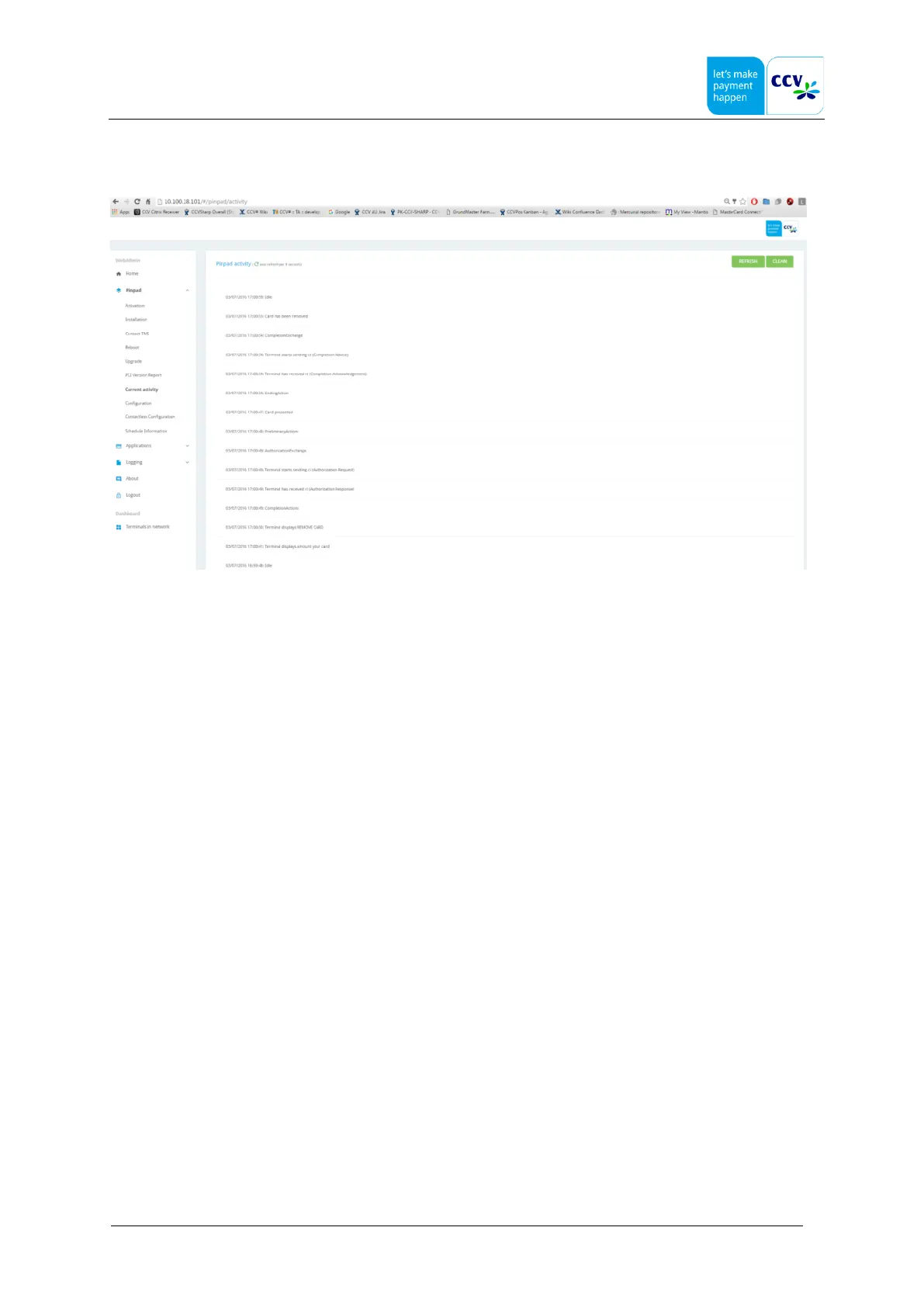 A real time activity stream allows a service engineer to see what is going on during a transaction.