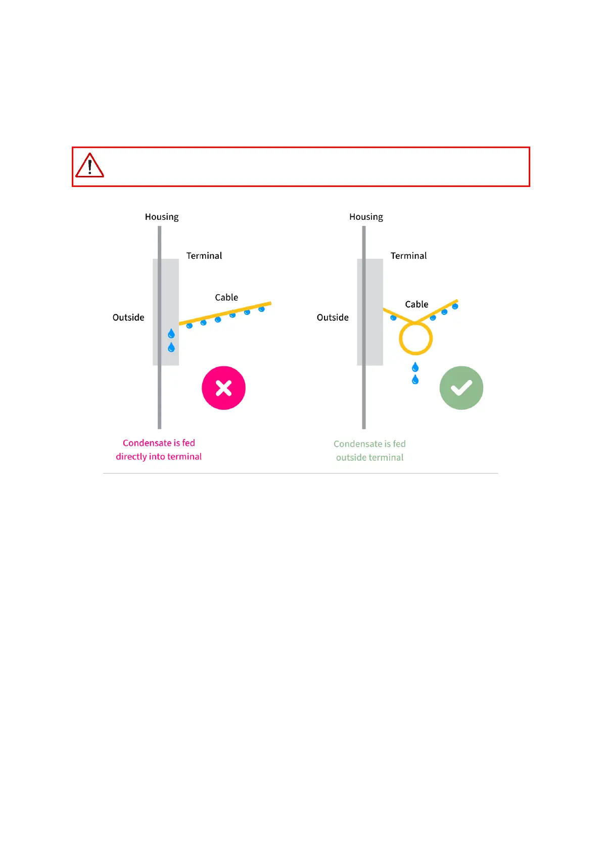 way, that liquids (i.e., condensation) cannot flow down the cable into the device: