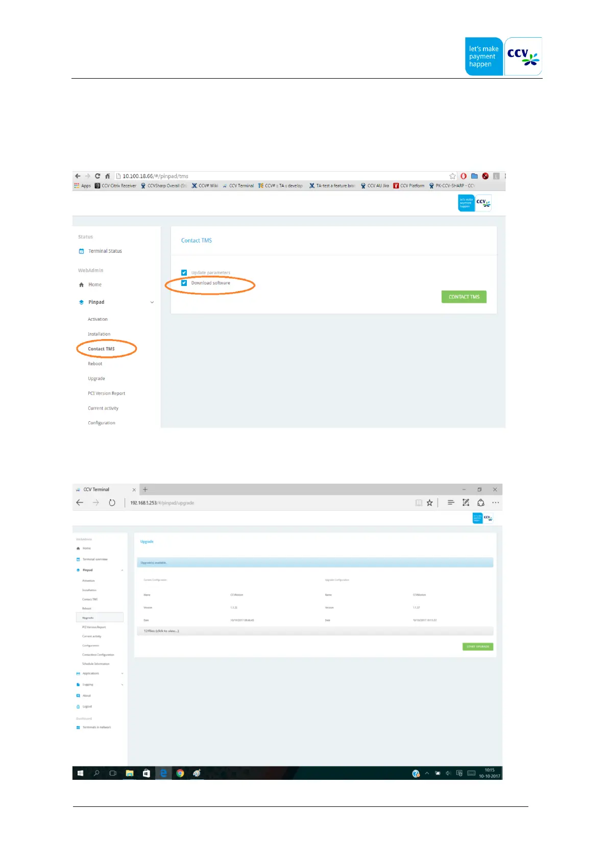 Instruction to upgrade a CCV Motion terminal that is already using a web based admin page (WebAdmin).