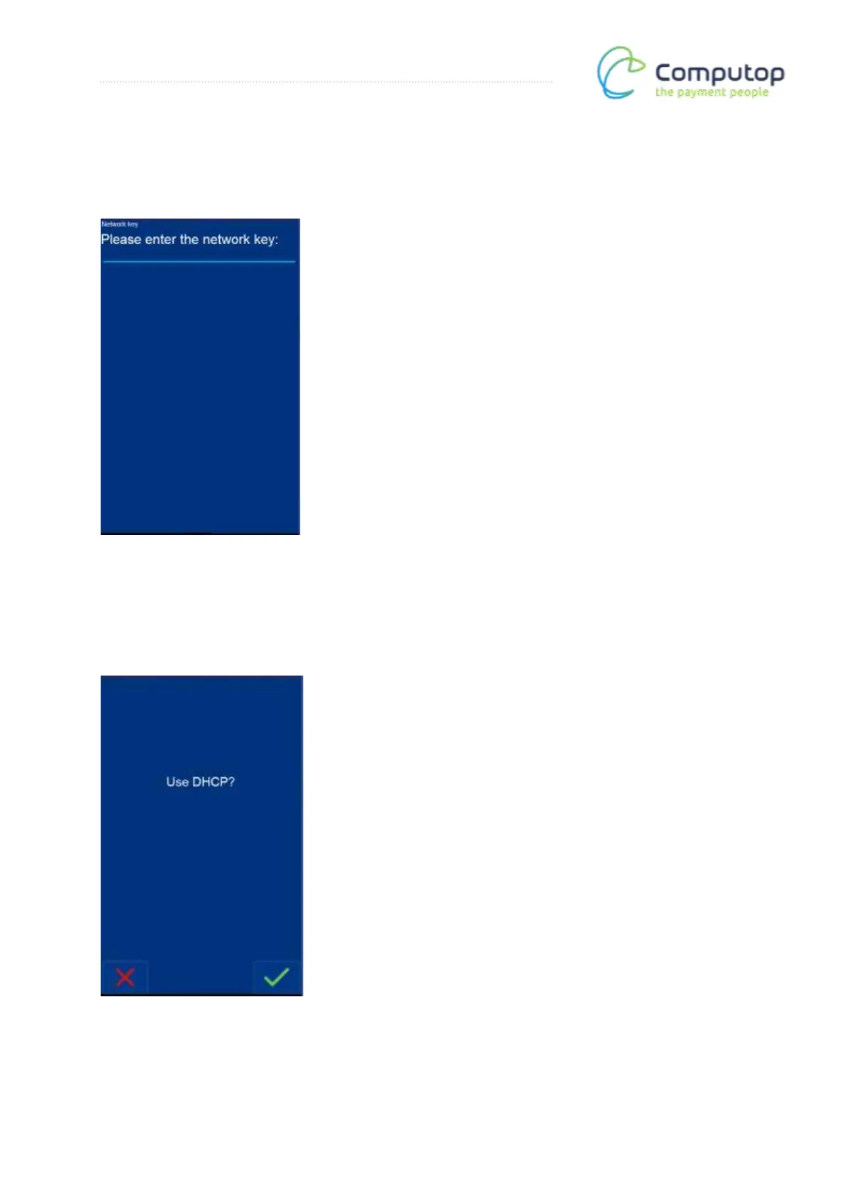 Alternatively, a fixed IP address may also be assigned. In this case, press the red X and enter