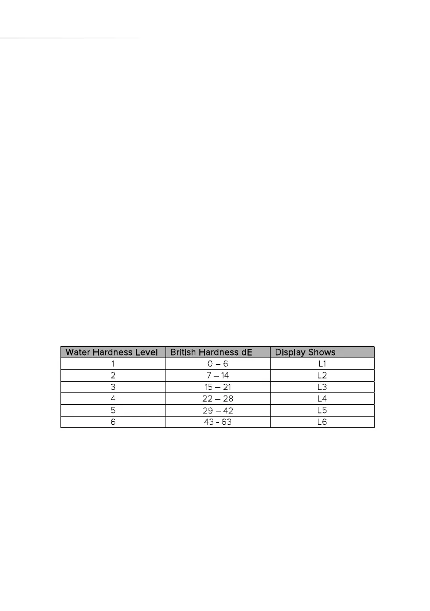 6. To store the selected water hardness level, press the ‘Power’