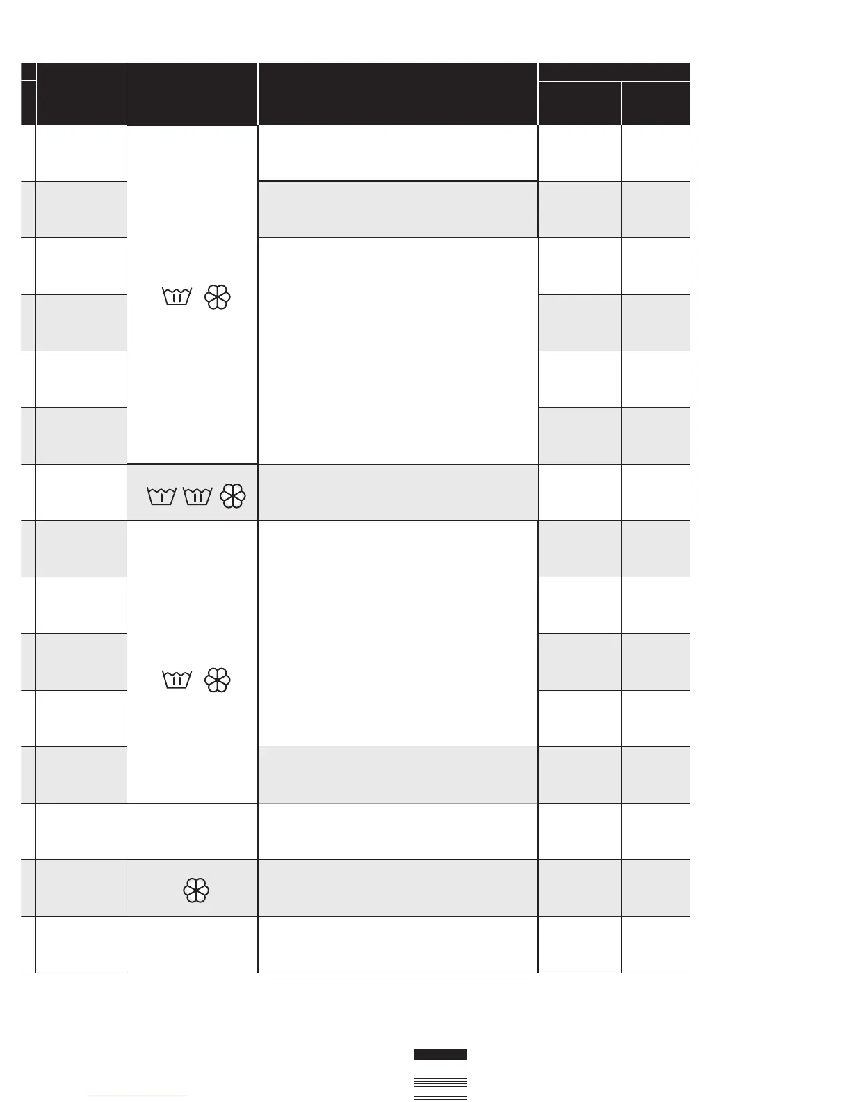 NOTE: the KWh and litre consumptions and programme durations may vary depending