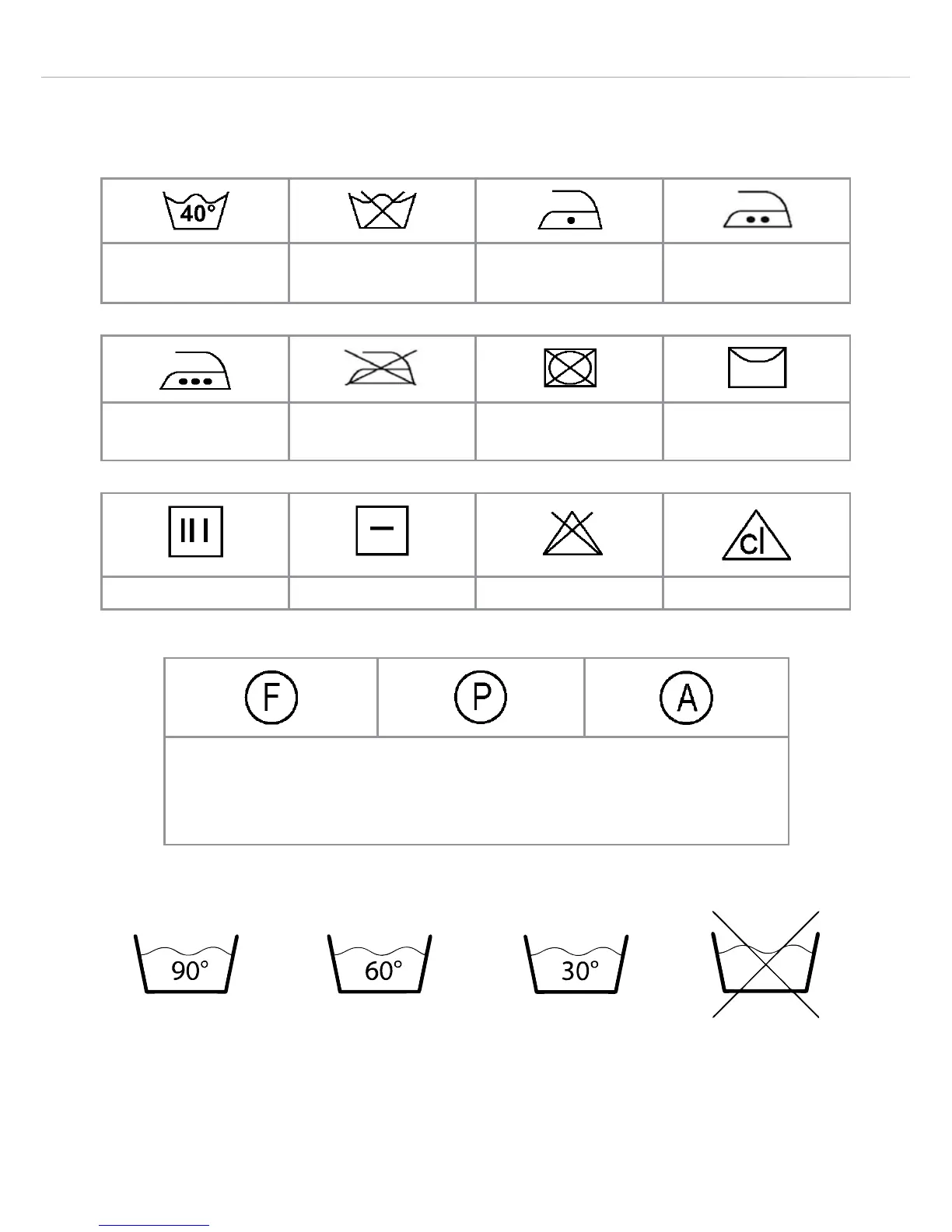 Wash up to 90 °C Wash up to 60 °C Wash up to 30 °C Do not wash in a