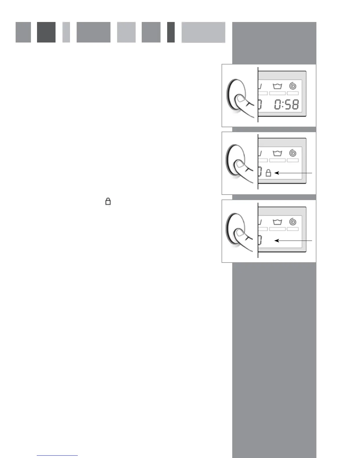 • After 3 seconds, the lock function indicator will disappear from the display,