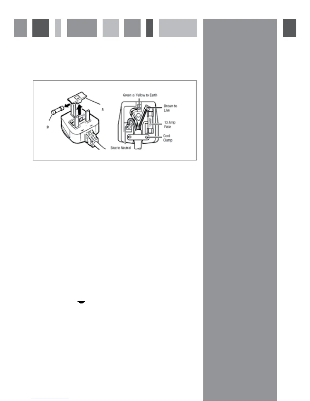 If the tted plug is not suitable for your socket outlet, then it should be cut off and disposed of safely to avoid the risk of