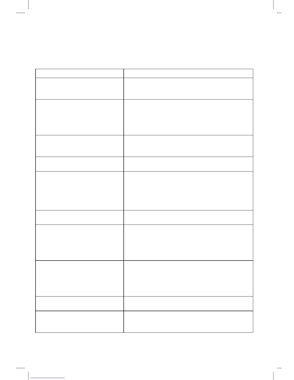 Troubleshooting Table