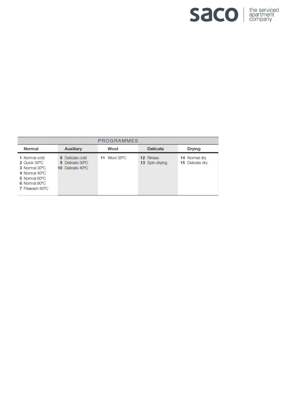 There are five types of programme: Normal, delicate, wool, auxiliary and drying.