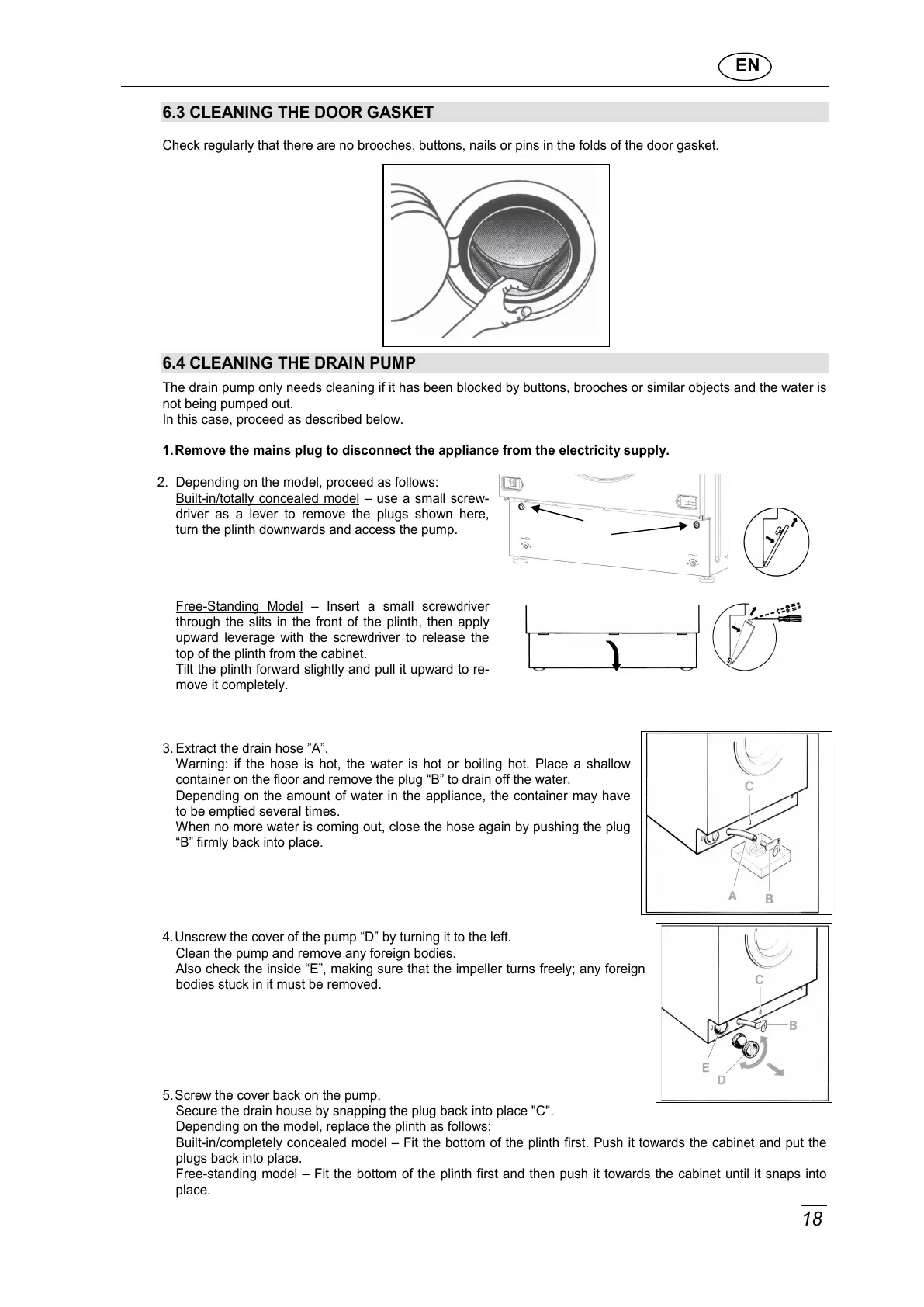 Check regularly that there are no brooches, buttons, nails or pins in the folds of the door gasket.