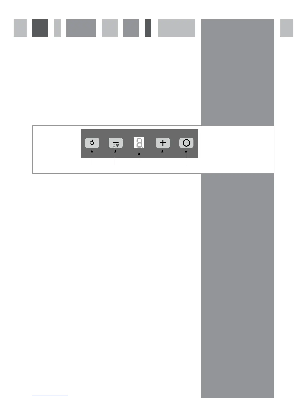 • To switch the extractor off, touch and hold key B for two seconds when the extractor is working at higher speeds, or touch