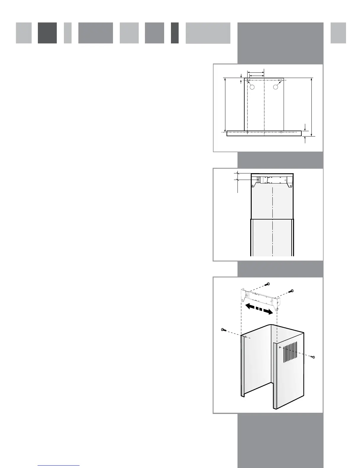The extractor is mounted to the wall using 6 plugs and fixing