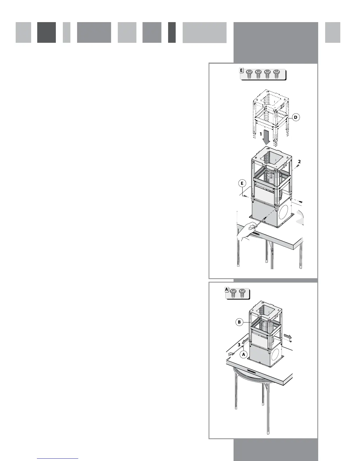 1. Place the extractor body on a table and fix the support sections (D) using